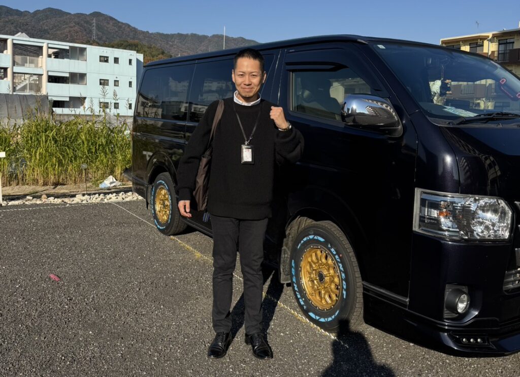 お客様のプライバシーを配慮するため社名の記載がない社用車(ハイエース)で伺います